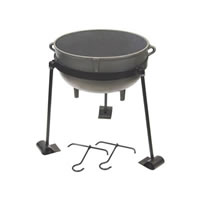 When you purchase this 30 gallon jambalaya pot, you will also receive the pictured TJ hooks and jambalaya pot stand. Use the jambalaya pot TJ hooks to safely lift and move your jambalaya pot. Use the jambalaya pot stand to easily use your jambalaya pot over a campfire or outdoor burner.